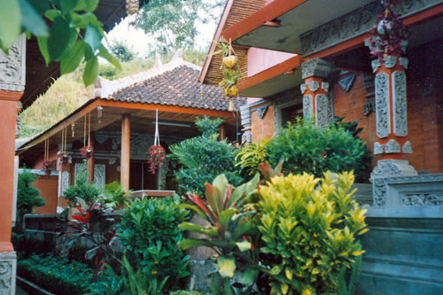 Wir fuhren mit einem Bemo nach Singaraya, holten uns am Warung wieder diese Eierkuchendinger und trabten wieder zum Telegrafenamt, diesmal mit erfolgreichem Telefonversuch. Wir gingen dann zur Hauptstraße zurück, aber es war fast nichts mehr los. In den anderthalb Stunden hatte sich der ganze Trubel verzogen. Und ein Bemo war auch weit und breit nicht zu sehen. Irgendwelche nicht sehr vertrauenerweckende Männer meinten, dass kein Bemo mehr nach Lovina fährt und boten uns an, uns mit dem Motorrad zu fahren. Das war uns aber ein bisschen unheimlich und wir machten uns auf in Richtung Busbahnhof, in der Hoffnung dort noch ein Bemo zu finden. Notfalls könnte man ja auch die 7 km nach Lovina laufen. Wir waren noch gar nicht weit gekommen, da tauchte ein Bemo auf, ein Stück weiter stieg noch ein deutsches Pärchen zu, die sich aufs Laufen eingerichtet hatten, denn sie hatten auch die Motorradfahrer getroffen.