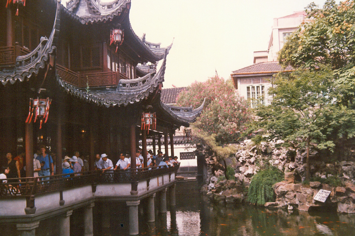 1.) Fahrt in Richtung Bund (9:00-9:50): Da eine Stadtbesichtigung in der Riesenstadt nur punktuell möglich ist, war die lange Fahrt vom Stadtrand bis in die Nähe des Bundes ein aufschlußreiches Erlebnis. Wir bekamen etwas von der Verkehrsdichte in den geschäftigen Einkaufsstraßen mit, passierten den Volksplatz, auf dem ehedem die Pferderennbahn lag, und gelangten durch die Tibet-, Hueihai, Renmin- und Lishui-Straße schließlich in den Bereich der noch existierenden Altstadt.