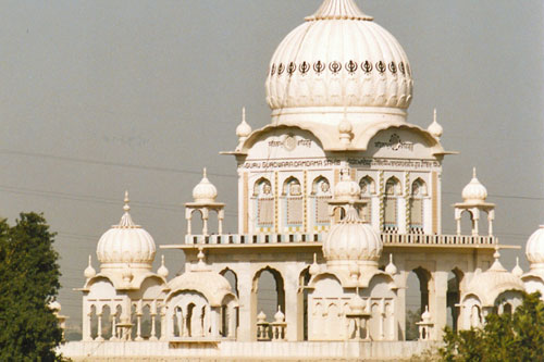 Von der Terrasse des Grabmals Humayuns konnten wir ein wunderhübsch, etwas verspielt wirkendes Gebäude sehen, was aber in keinem Buch oder Stadtplan vermerkt war. Auf Nachfrage an unseren Fahrer erfuhren wir, dass es sich um einen Sikh-Tempel handelte, und er war sichtlich erfreut, dass wir ihn uns ansehen wollten.