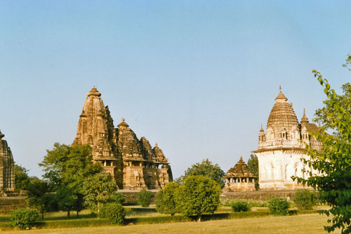 Das moderne Khajouraho ist nichts anderes als eine Zusammenballung von Hotels, Restaurants, Läden und Verkaufsständen rings um den Busbahnhof. Die Tempel stehen in drei Gruppen zusammen. Unmittelbar beim modernen Teil der Stadt findet man die Westgruppe,zu dieser Gruppe gehören die größten und bedeutendsten Tempel von Khajouraho. Etwa 1 km östlich des Busbahnhofs liegt die Altstadt von Khajouraho. Sie ist von der Ostgruppe der Tempel umgeben. Abgesehen von den prachtvollen Tempelbauten ist Khajouraho ein friedlicher Ort, an dem man richtig ausspannen kann. Der Alltag in der Stadt verläuft ruhig und ohne Hektik.