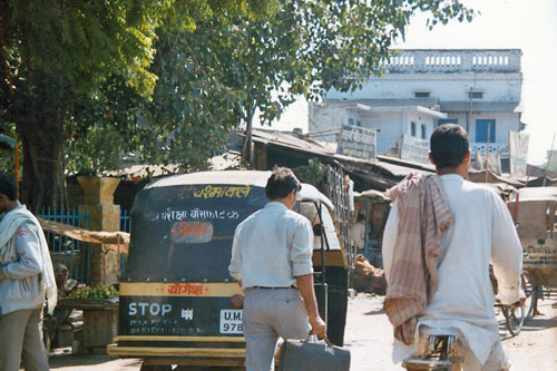 Nach dem Frühstück fuhren wir mit einem nicht Englisch sprechenden Scooterfahrer zu Indian Airlines, der unser Fahrtziel nur rauskriegen konnte, indem er seinen Schlepper unterwegs einlud, der uns auch gleich alles mögliche aufdrängen wollte, aber erfolglos. Gegen halb 12 waren wir bei Indian Airlaines in der Nähe des Hotel Clarks im Stadtteil Cantonment. Eine etwas größere Menschenmenge hat sich im Indian Airlines Büro eingefunden, und so hieß es eben warten. Gegen 13:00, nach endlos erscheinender Warterei hatten wir das ok für alle unsere Flüge (Varanasi - Calcutta - Bagdora - Calcutta) und die Tickets waren ausgeschrieben. Als das Mädel mit Schreiben fast fertig war, fiel der Computer aus, aber mit unseren Flügen hatte es gerade noch geklappt.