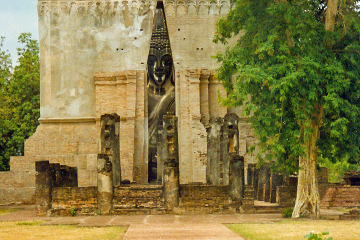 Sukhothai (25.000 Einwohner) liegt an dem kleinen Fluß Mae Nam Yan. Der Ort unterteilt sich in zwei verschiedene Teile, so wie sie unterschiedlicher nicht sein könnten. Der neue Stadtteil - Neu-Sukhothai - ist ein Provinznest, das man sich in einer Stunde erwandert hat. Der historische Teil dagegen - Old-Sukhothai - zwölf Kilometer westlich der Neustadt, ist eine der imposantesten Ruinenstädte überhaupt. Sukhothai wurde 1238 gegründet und war 120 Jahre lang die Hauptstadt der ersten Thai Nation. Sukhothais König Ramkanghaeng (1275 - 1317) wird allgemein als Vater der Nation bezeichnet, doch unter seinen Nachfolgern zerfiel das Reich zunehmends und wurde im 14. Jahrhundert schließlich von Ayuthaya abgelöst.