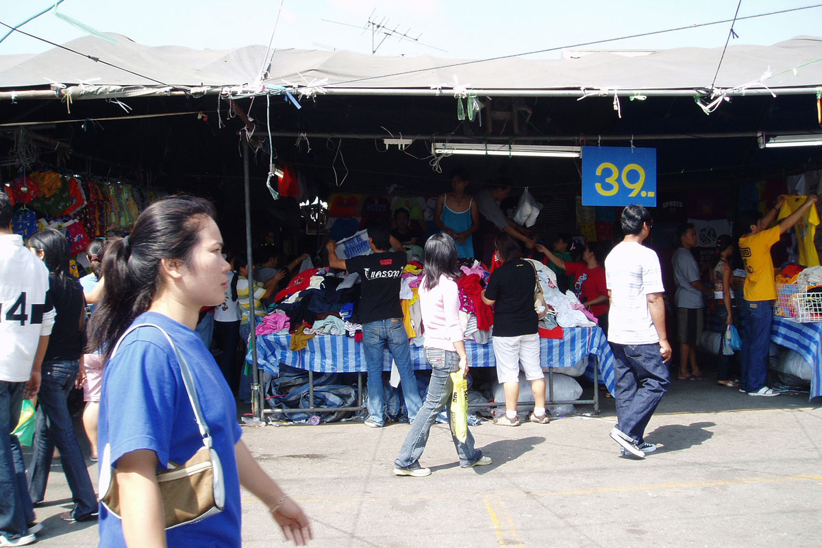 Nicht weit von Bayoke Tower liegt das Indra Regent Hotel und direkt daneben beginnt eine gewaltige Markthalle, der Pattunam Markt, zwischen Rajdamri und Petchaburi Road, hauptsächlich gibt es dort Kleidung und Textilien zu kaufen. An den zahlreichen Straßenständen die bekannte "Markenware". Irgendwie waren wir aber nicht so recht im Kaufrausch, so wurden es nur ein paar T-Shirts. Auf dem Rückweg zum Sky Train kamen wir noch am gewaltigen Central World Plaza mit dem Zen-Department Store vorbei und hier wurden wir dann doch noch fündig, dieses mal sogar echte Jeans und verglichen mit den Preisen in Deutschland sehr günstig. Vor dem Plaza gab es Heineken Bier vom Fass und hier warteten wir auf das Kürzen der Hosen, das in Thailand selbstverständlich nichts kostet. dann fuhren wir mit Sky Train und Expressboot wieder zum Hotel zurück.