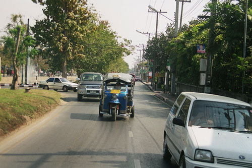 Gegen 5:00 wurde ich wieder wach, fühlte mich etwas gerädert, aber immer noch besser als wenn man die ganze Nacht hätte sitzen müssen. Die letzten Stunden zogen sich etwas in die Länge, gegen 7:00 Uhr wurde es dann hell um halb acht waren wir da. Mit einem Taxi fuhren wir zu unserem Hotel, dem Chiang Mai Gate Hotel, dort erwartete uns eine junge Frau, die uns auf dem Bahnhof gesucht hatte, wir hatten vergessen unsere Sticker vom TAT anzustecken, und so hatte sie uns nicht gefunden, der Transfer zum Hotel wäre eigentlich im Preis inbegriffen gewesen.