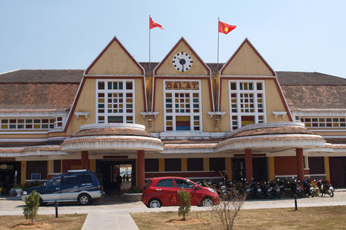 Der Bahnhof von Da Lat stammt noch aus der Kolonialzeit, ist hübsch restauriert, aber Züge fahren hier nicht wirklich. Es steht eine alte Dampflok aus dem Jahr 1936 herum und in einem Wagon aus den 50er Jahren ist ein Café untergebracht.