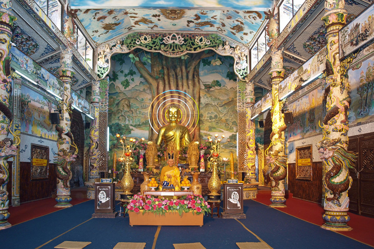 Die Haupthalle ist 33 Meter lang, 22 Meter breit und 27 Meter hoch und beinhaltet 108 Statuen. In der Haupthalle sind zwei Reihen von "Drachensäulen" die denen der Gräber der Nguyen Könige ähneln. Vor der Haupthalle steht der 7-stöckige, 36 m hohe Glockenturm.