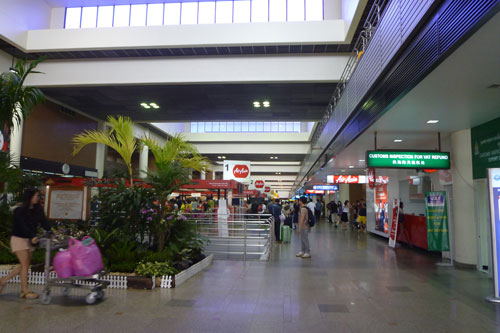 Spätes Frühstück gegen 9.30 und diesmal war auch nicht viel los. Anschließend packende Szenen und dann warten, dass es 12 Uhr wird zum Auschecken. Abfahrt mit dem Taxi (600 Baht) gegen 13.30 kamen wir in Don Mueang an, wieder mal viel zu früh. Durch Nachfragen kriegten wir dann raus, dass wir unser Gepäck am Schalter 2 loswerden konnten. Wir gingen dann auch gleich durch die Passkontrolle. Im Duty Free Bereich fanden wir einen Uhrenstand, die einzige Uhr die Rolf gefiel, war zu teuer. Also keine Uhr gekauft