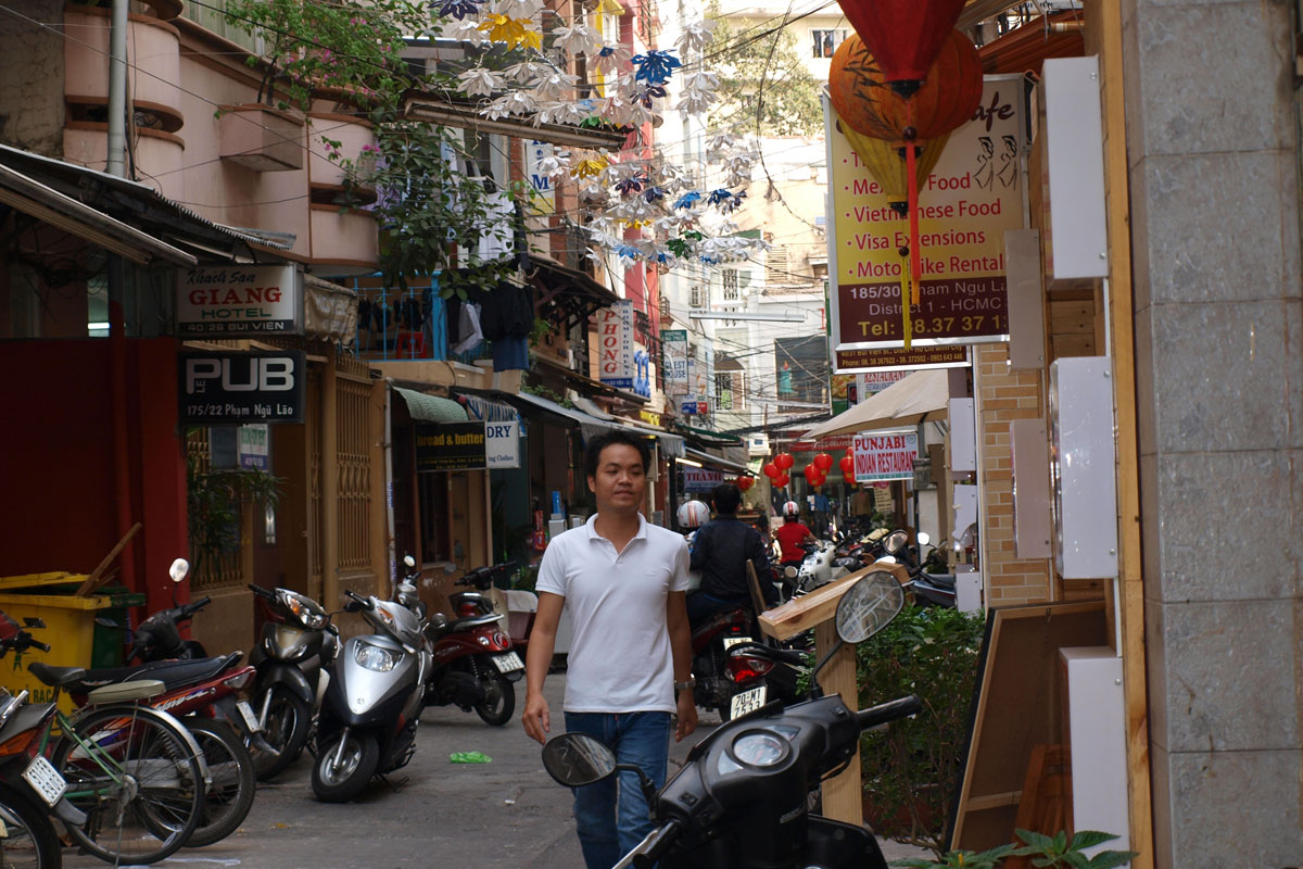 Wir frühstückten erst um 9.30, sehr enttäuschend, kein Baguette, sondern nur matschiger Toast. Wir brachen dann auf, um uns bei Sinh oder Kim Travel um unsere Weiterreise zu kümmern, fragten bei Sinh Travel nach Zugtickets und bekamen die etwas unfreundliche Antwort: Haben wir nicht.