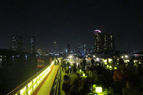 Um 19.30 legte das Schiff ab und fuhr den Maenam Chao Phraya entlang bis hinter die Saphan Taksin, drehte dort um und kehrte zurück.