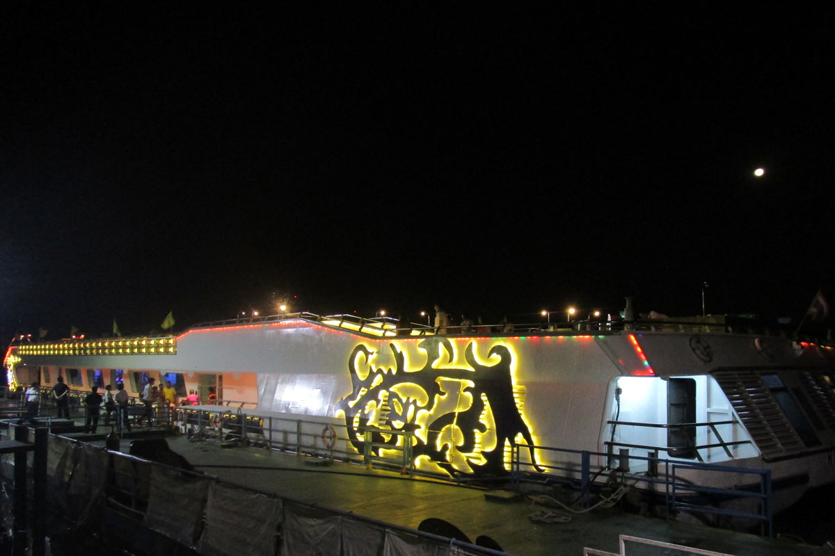 Wir waren dann kurz nach 15 Uhr wieder im Hotel und brachen um 18.30 wieder auf zum Riverside Hotel. Wir waren zwar etwas zu früh, aber wir durften trotzdem gleich auf unser Schiff und kurz danach wurde auch schon das Büffet eröffnet.