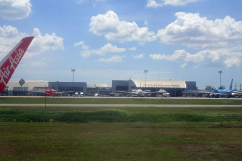 Wir mussten noch ein wenig auf unser Taxi warten, aber um 11.20 war es da, und die Fahrt zum Flughafen Krabi dauerte nur eine halbe Stunde. Der Check-in war auch wieder völlig normal am Schalter, ohne Arbeitsbeschaffungsmaßnahmen.