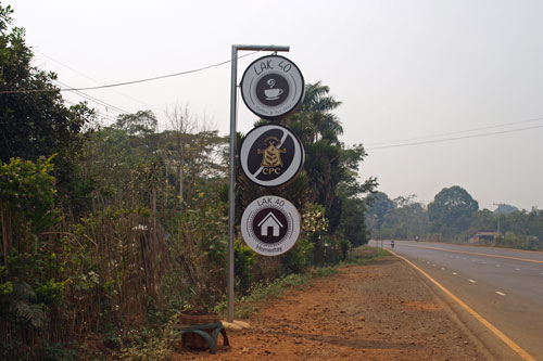Unser nächstes Ziel war die Kaffeeplantage Lak 40, wo wir um 12:40 Uhr ankamen, nur 2 km vom Tade Fane Resort entfernt,. Da der Anfang des Weges zur Plantage aus einer wackligen Treppe ohne Geländer bestand, blieb ich lieber im Auto.