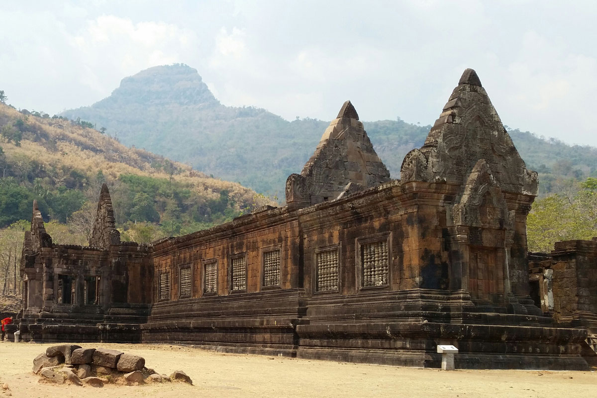 Wagt man den Aufstieg über die steilen Treppenstufen hinauf zum Tempel, so wird man mit einem atemberaubenden Ausblick auf die unterschiedlichen Ebenen des Tempelkomplexes und die umgebende Landschaft belohnt. Die unterste Ebene des Komplexes besteht aus teilweise noch erhaltenen Wasserbecken, die rituellen Waschungen dienten. In der zweiten Ebene finden sich der Männer- und der Frauenpalast und in der obersten Ebene ist der eigentliche Tempel zu finden, der zu früheren Zeiten einmal einen mächtigen Shiva-Phallus beherbergte. Ursprünglich war Wat Phou ein hinduistischer Tempel, wurde aber später von den Laoten zu einem buddhistischen Tempelkomplex umfunktioniert. Dennoch sind nach wie vor hinduistische Skulpturen und Hindi-Elemente zu erkennen.