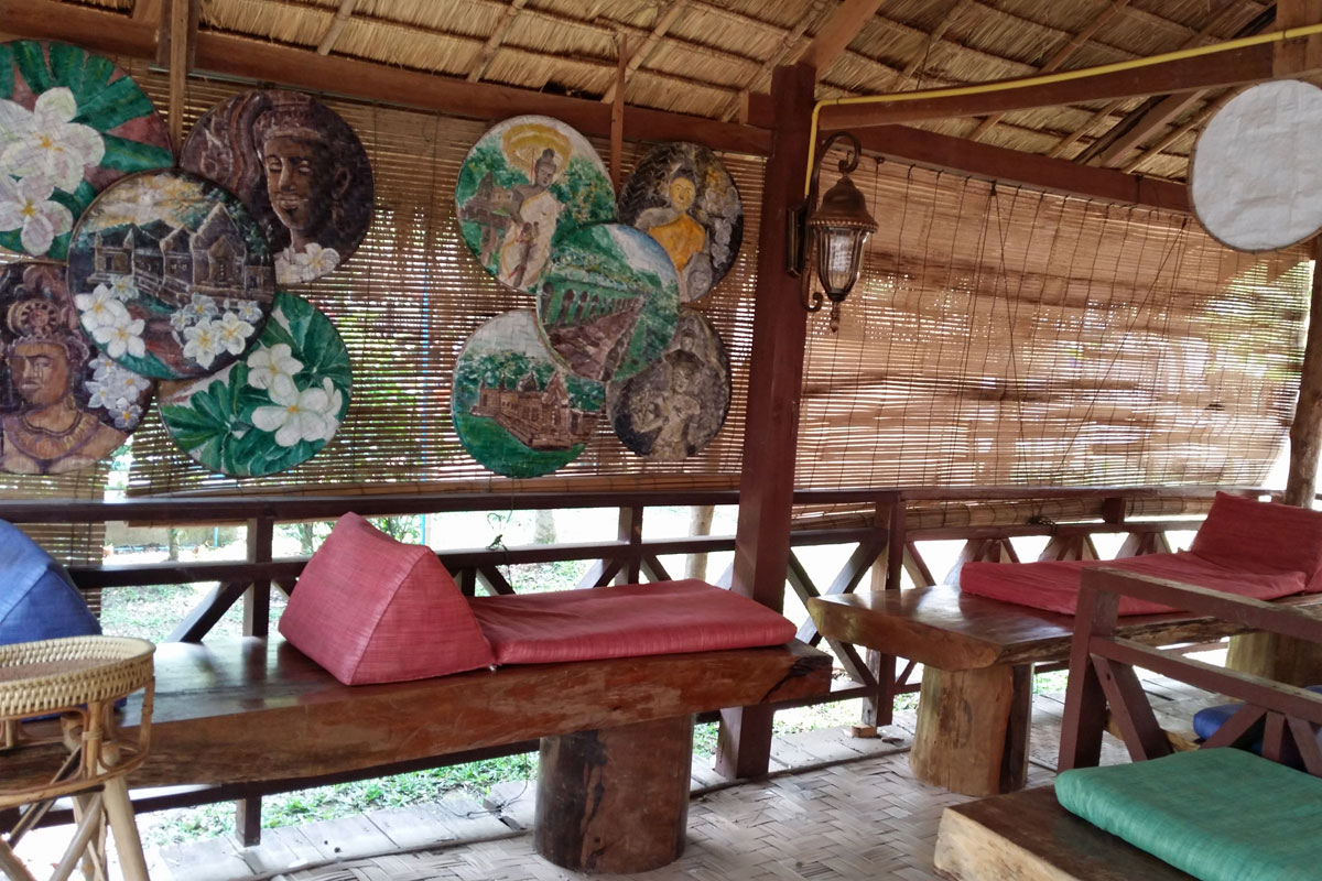 Nach einer Stunde war Sylvia wieder da, und wir fuhren zu dem direkt am Mekong gelegenen Nakorn Cafè, wo wir kurz vor 14 Uhr ankamen. Weil wir noch keinen Hunger hatten, tranken wir ein schönes kühles Bier Lao und genossen die Ruhe, am Mekong zu sitzen. Wir trafen ein Pärchen aus unserem Hotel in Pakse, die wollten einfach mal was anderes machen und für 2 Tage am Mekong bleiben, denn dort wurden auch Zimmer angeboten. Nach einer Stunde fuhren wir dann weiter zum Wat Phousalao.