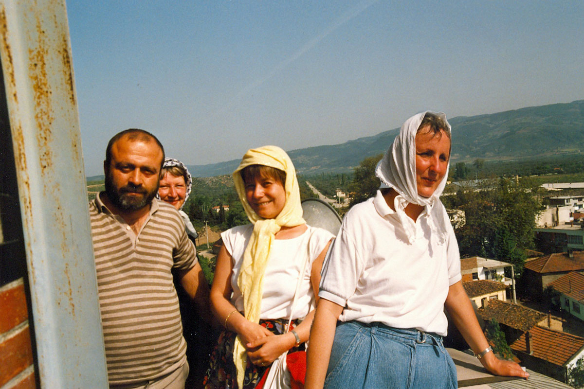 Wir unterbrachen unseren Rundgang durch ein Mittagessen und waren gegen 14:00 wieder an der Moschee. Dieses Mal konnten wir hinein, es war nur ein Mensch da, Moscheewächter oder so was wie ein Küster. Er wollte uns drei Mädels sofort ein Gespräch aufdrängeln, nachdem wir gefragt (mehr gezeigt) hatten, ob wir in die Moschee hinein dürften. Das sich unser Türkisch sehr in Grenzen hielt, er aber nur Türkisch konnte, kam so recht keine Unterhaltung auf. Er erwähnte dann aber doch auf Deutsch: "Deutsch Fußball gut", worauf Hanni spontan der Name Franz Beckenbauer einfiel und die Freundschaft war geschlossen.