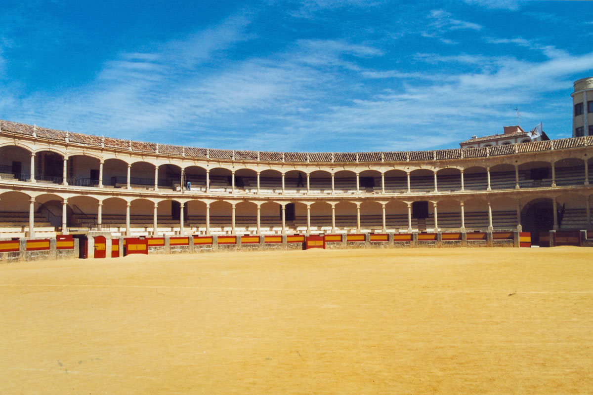 Wir hatten von der ältesten Stierkampfarena Spaniens gelesen und wollten sie nun besichtigen. Sie war wirklich nicht schwer zu finden. Diese Arena oder Plaza de Toros wurde 1785 errichtet, hier wirkte der spanische Matador Pedro Romero, der als erster den Stier zu Fuß bekämpft hatte. Die Arena hat einen Durchmesser von 66 Metern, umgeben von einer zweigeschossigen Zuschauertribüne, die 5000 Zuschauern Platz bietet.