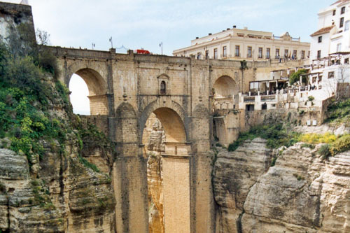 In der Nähe der Puente Nuevo, der neuen Brücke erbaut (1793 nach vierzigjähriger Bauzeit fertiggestellt), die sich in schwindelnder Höhe über die Schlucht spannt, fanden wir einen Weg nach unten in die Schlucht zur Puente Viejo, der alten Brücke. Ich habe keine Ahnung, wann diese erbaut wurde, aber dem Namen nach wohl früher. Auf der anderen Seite des Flusses ging es wieder steil nach oben und so kamen wir in die Altstadt. Wir durchquerten die Altstadt, kamen immer wieder an Stellen mit wunderbarem Ausblick vorbei.